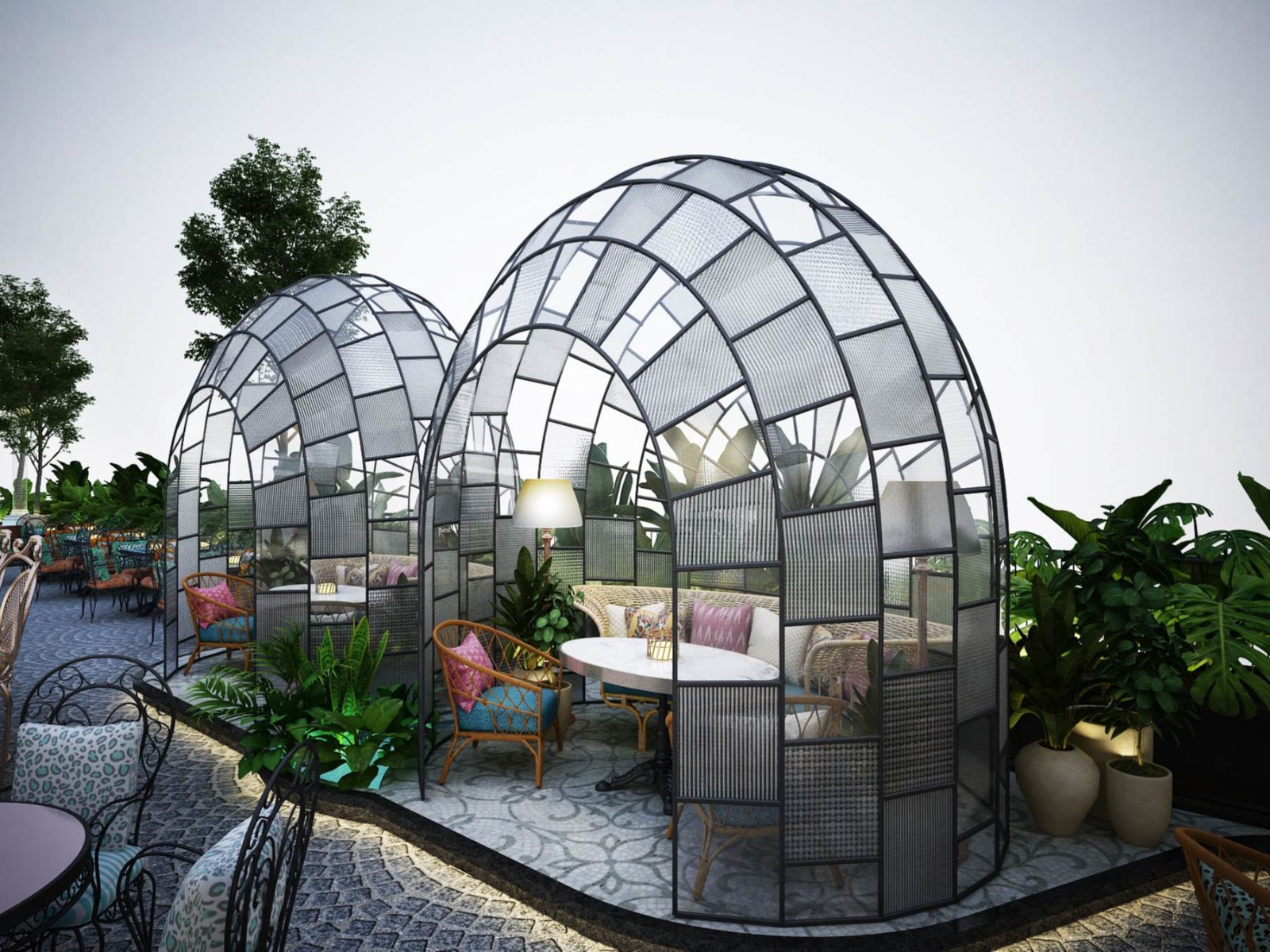 The Tensile fabric is continuously fixed to walls or beams or attached to columns. Between Connection points where cable or webbing is required for carrying loads over major structural points , fabric forms curved edge or “a Catenary Curve “. Catenaries are usually curved inward from 7 to 15 of the total length of the span. After determination of parameters the next step is of developing design. There could be the involvement of either a basic design or computer aided design.