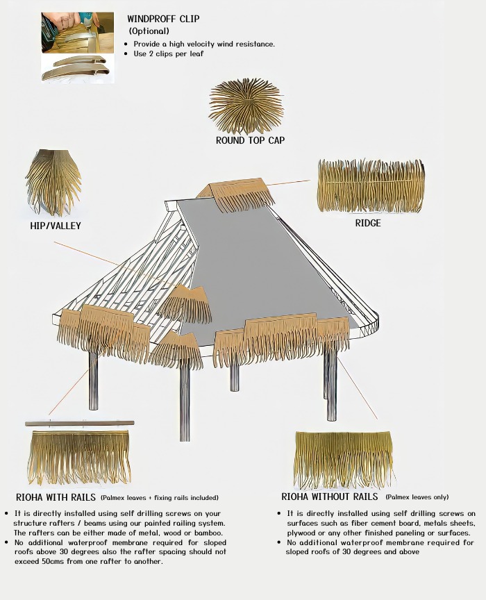 These roofs are widely used in resorts, villas, restaurants, theme parks, and outdoor structures to create a premium and relaxing environment.