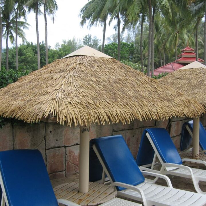 Modern thatch materials are engineered to withstand UV rays, heavy rain, and wind conditions.